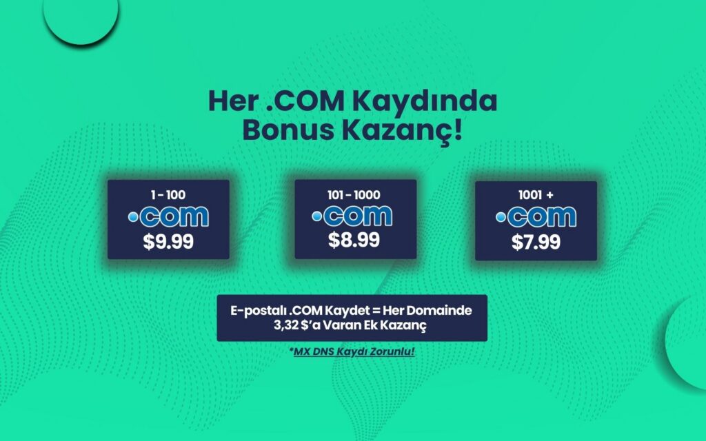 2026 yılı boyunca Domain Name API üzerinden yapılacak her yeni .COM kaydı, eğer MX kayıtlı bir e-posta servisi ile yapılandırılırsa .COM İndirim Programı dahil olarak indirim […]