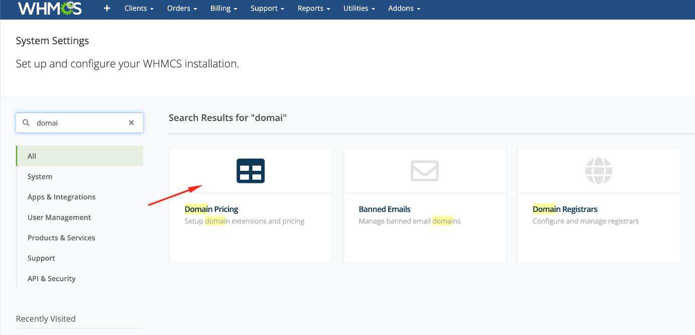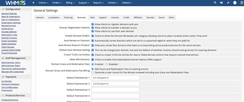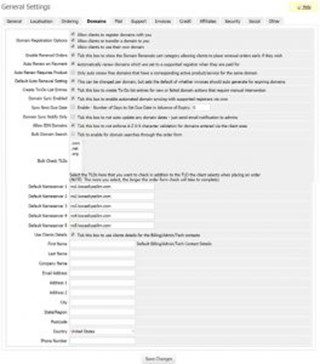Activate the ‘Allow clients to register domains with you’ option if you want your customers to be able to register domain names themselves.