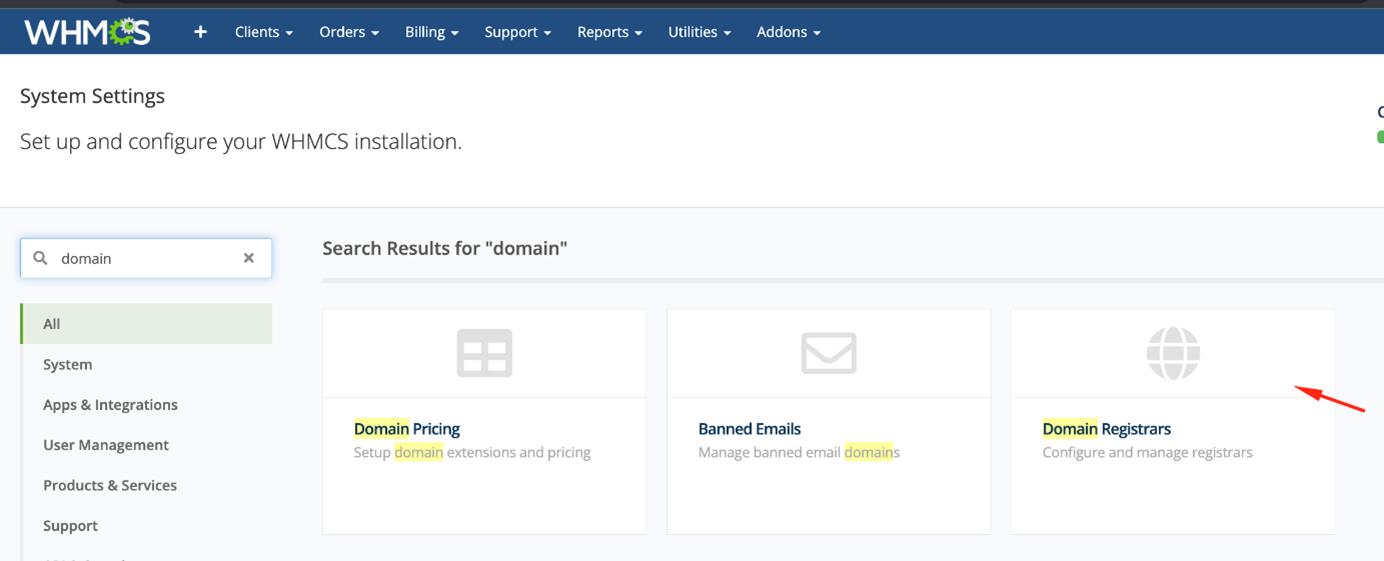 After clicking the System Setting section, come to the Domain Registrar Section,