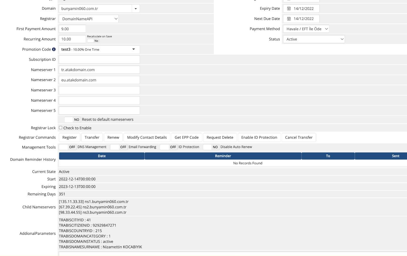 Match the TR Identity Number and Tax Number Information to be used to obtain the .tr domain name of your users, if any, from the settings you have seen.