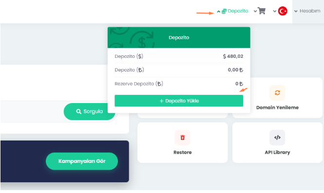 To register a domain name, renew, transfer, or order other services through Domain Name API, your account must have sufficient available balance. Thanks to the prepaid balance system, your transactions can be completed quickly and easily.