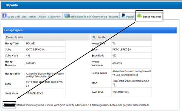Referans kodu ile havale işlemi başarısız olursa (10 dk – 30 dk aralığında eklenmezse), dekontunuzu destek talebi (ticket) üzerinden iletiniz.